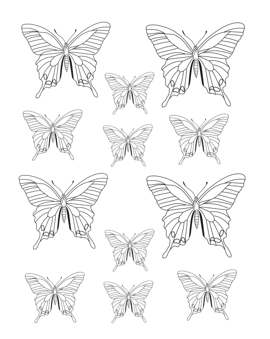 Cada folha contém mais de 12 imagens, totalizando mais de 140 borboletas prontas para você aplicar sozinhas ou em composições.